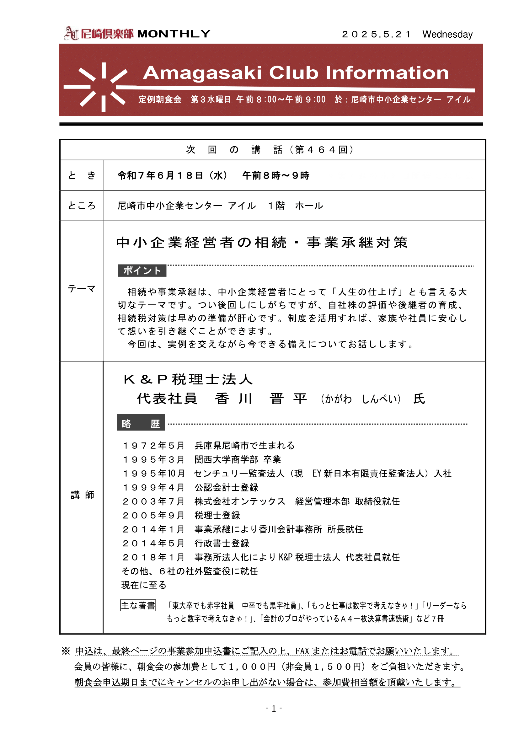 2025年6月18日 香川晋平が尼崎倶楽部朝食会で講師をしました。